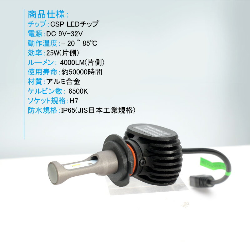 車検対応 LEDヘッドライト オールインワン H7 8000LM SEOUL CSPチップ 1年保証 LEDフォグランプ 2個set DC9V~32V 6500K ワンピース 一体型 ファンレス 取付簡単 電装