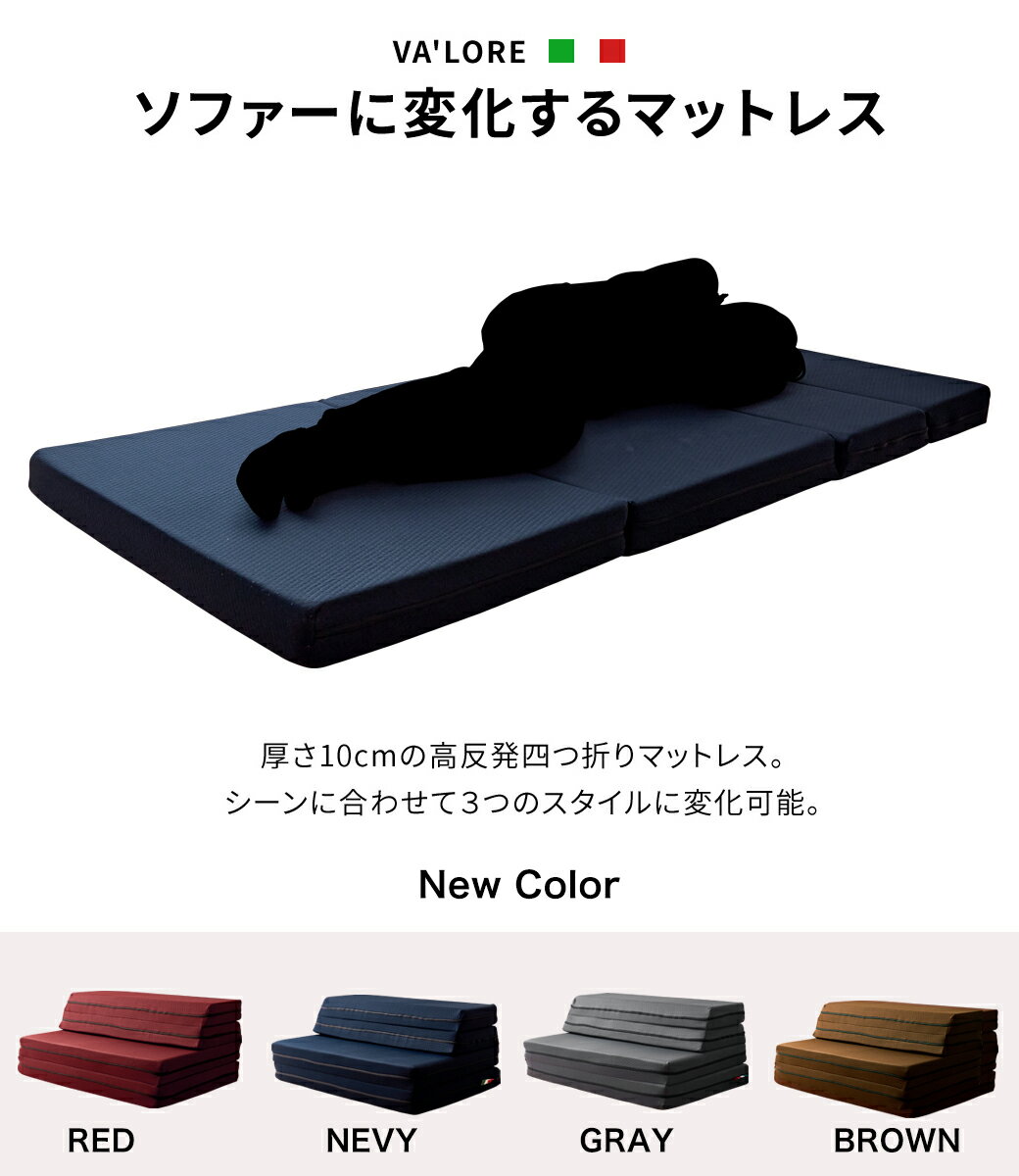 \ポイント5倍★6/13 0:00 〜 6/15 23:59まで★/ 折りたたみマットレス ダブル 厚さ10cm 4つ折りマット 高反発マットレス ソファーベッド イタリア製 軽量 硬め VA'LORE バローレ ウレタンマット IVM-003-D