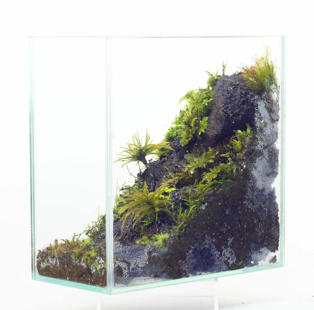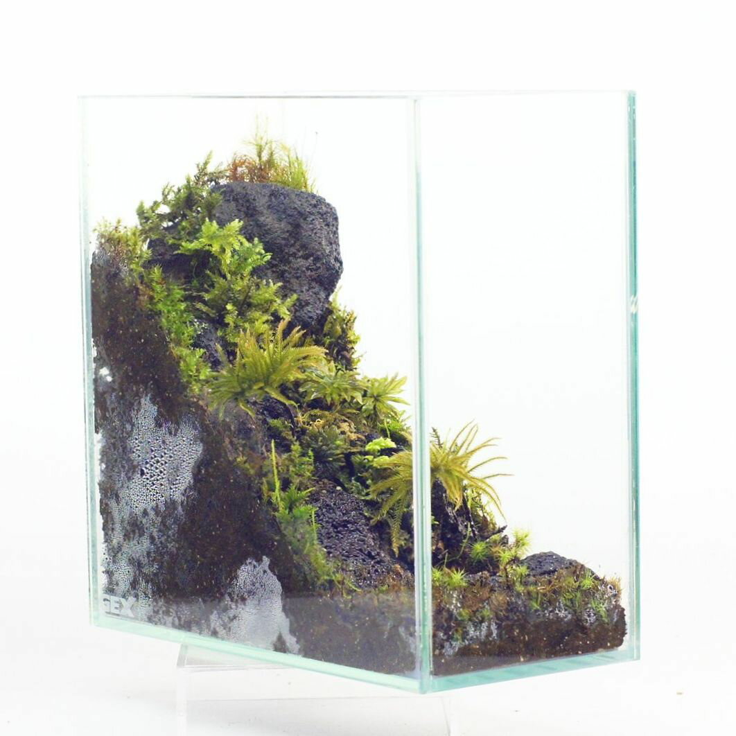 【完成品 現物】奥行き感のある 苔テラリウム ガラス水槽 溶岩石 蓋付きで手入れも要らない 本棚にも置けるインテリアを選ばない苔テラリウム 他の水槽では出来ない奥行き感のあるレイアウトが出来るGEXのグラステリアFITを使いレイアウトした苔テラリウムの完成品です。