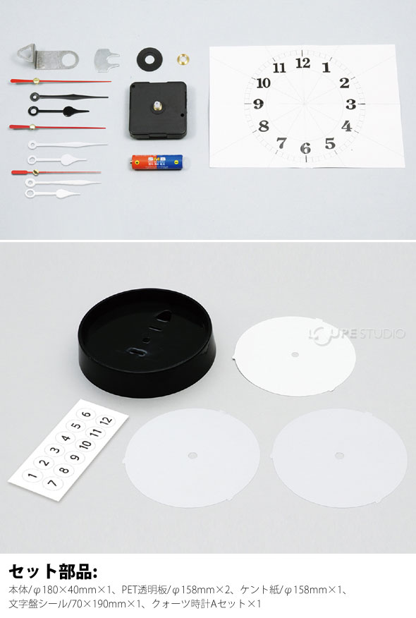 サークルクロック デザインセット 工作キット 小学生 自由研究 キット 学校 教材 図工 美術 宿題 時計スペック商品サイズφ180×40mmセット部品本体/φ180×40mm×1PET透明板/φ158mm×2ケント紙/φ158mm×1文字盤シール/70×190mm×1クォーツ時計Aセット×1材質PP、PET、ケント紙、透明シール アーテック 005111※仕様及び外観は改善のため、予告なく変更することがあります。