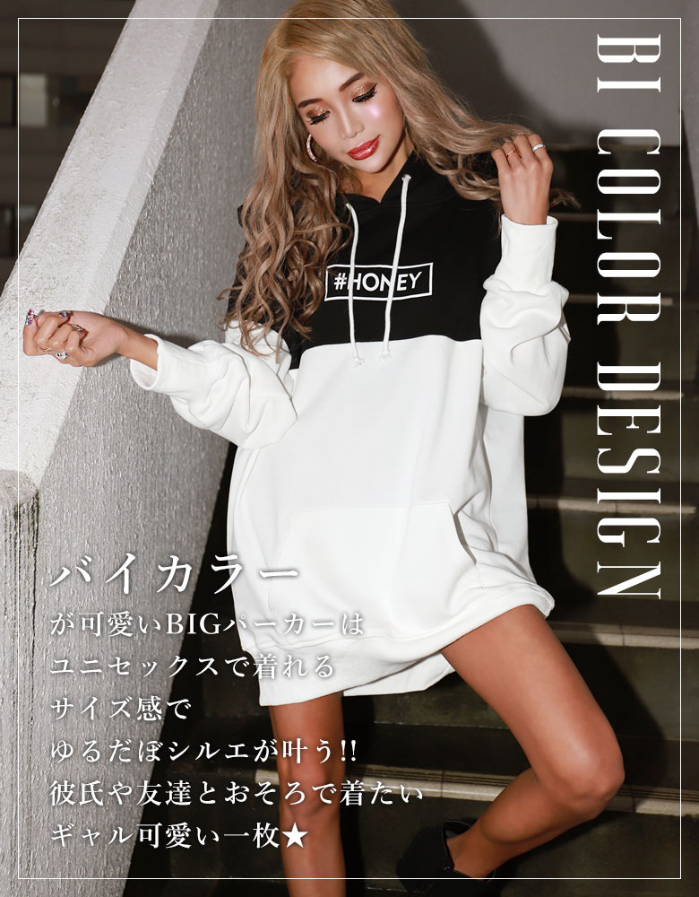 ギャル パーカー レディース 韓国 カップル お揃い ペア ビッグパーカー ユニセックス トップス ロゴ スウェット 長袖 ゆったり 秋冬 春 カジュアル バイカラー 黒 白 ギャル服 ブラッククイーン【TOPS_PK 藤木そら gal sora cl oem js_20】
